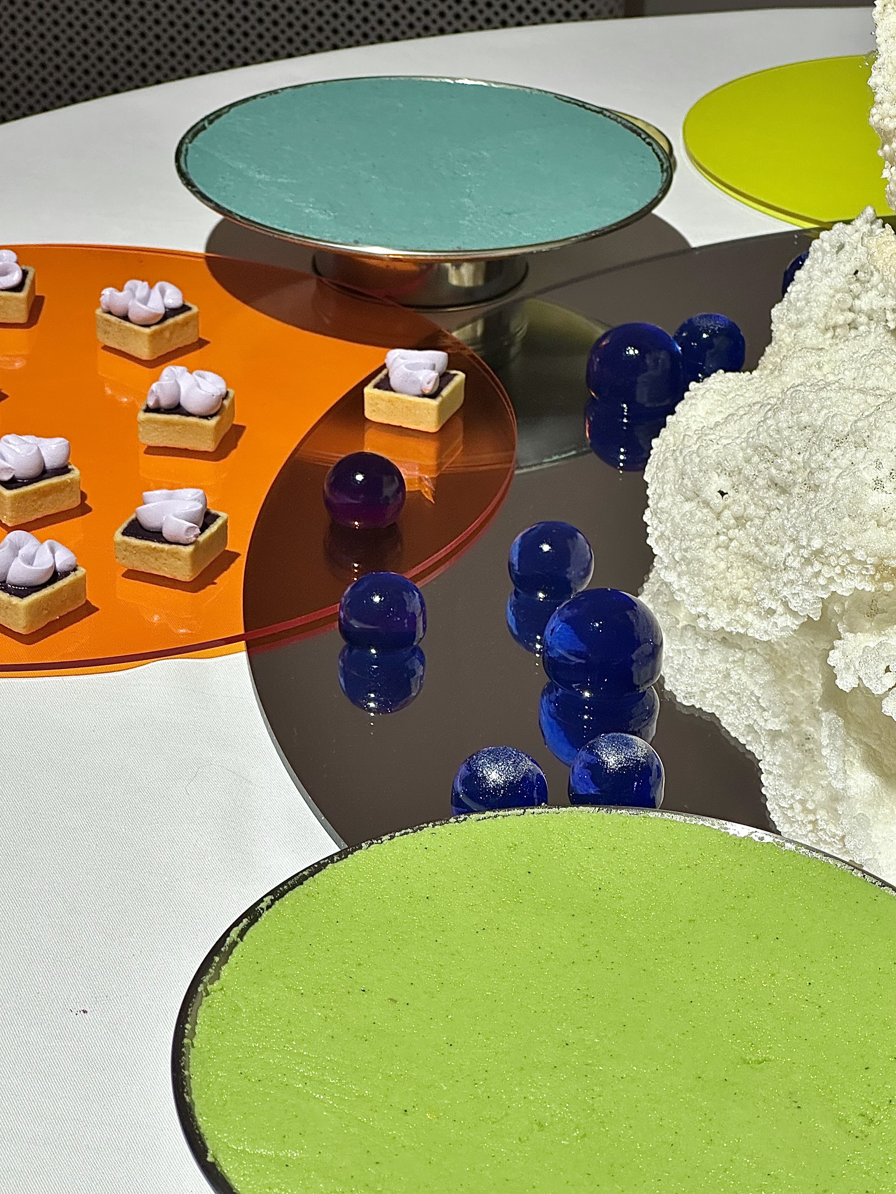 -> Panna cotta salée & Biscuit charbon végétal, Bliss balls cerises en trompe l’oeil, Feuille de riz soufflée & Ricotta olives et citron